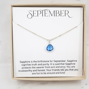 September Birthstone Necklace Sapphire Teardrop Necklace Etsy